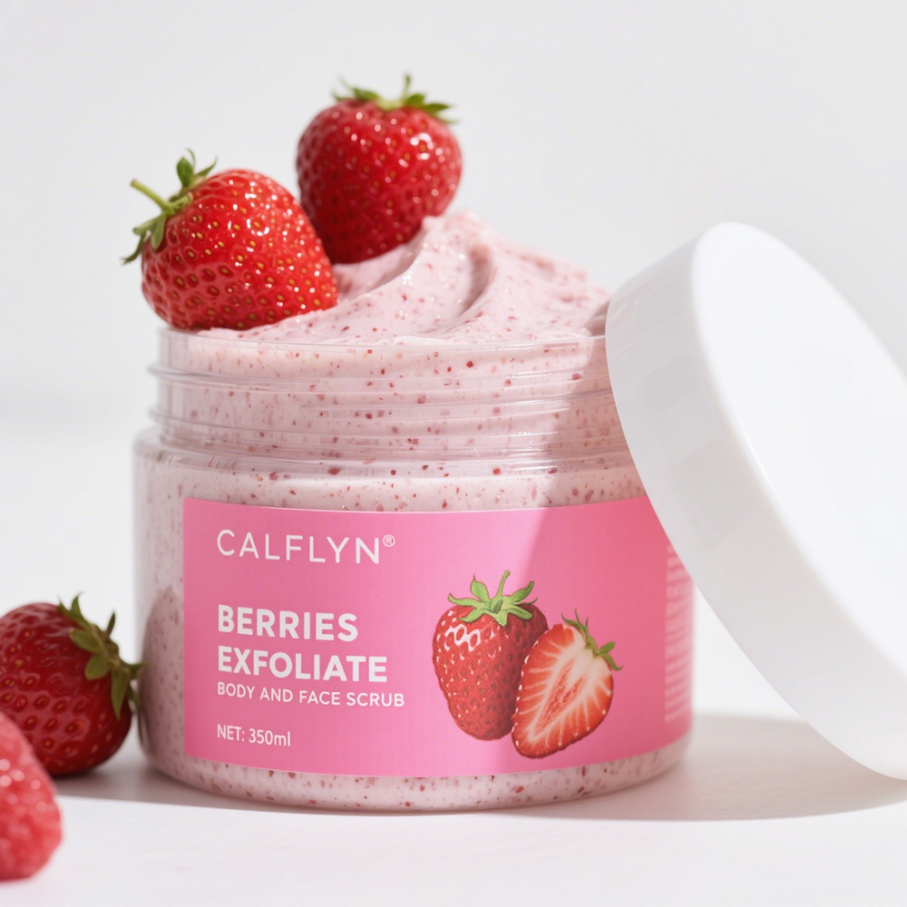 Natural strawberry body & face scrub with gentle exfoliating granules. Smooth, glowing skin ke liye ideal. OEM/ODM private label available.